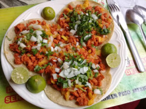 Experience Authentic Vegan Tacos at El Rincón de Tacotlán Located at Av 9 Pte 1729, Barrio de Santiago in Heroica…