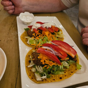 I had the falafel burrito, which was tasty and cheap. Recommended.